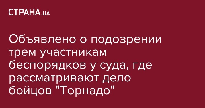 Трое активных участников беспорядков около здания Оболонского райсуда Киева, в котором проходило заседание касательно дела экс-бойцов роты патрульной службы милиции особого назначения "Торнадо", получили объявление о подозрении. Об этом сообщили в Национальной полиции Киева.