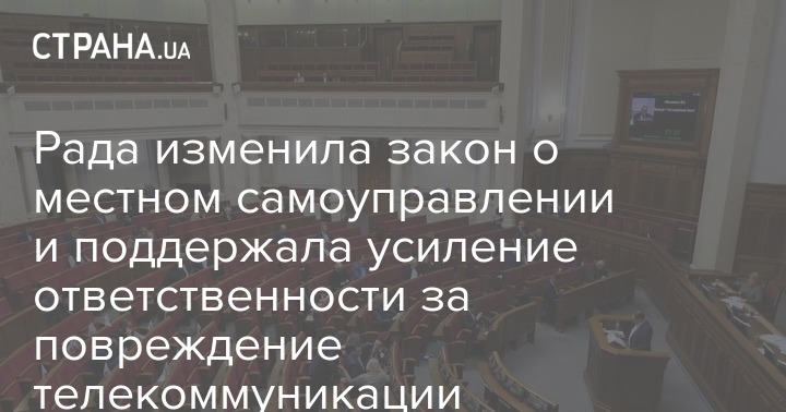 На внеочередном заседании Верховной Рады 16 апреля депутаты разрешили Кабмину определять территории и административные центры территориальных громад, а также поддержали за основу законопроект об усилении ответственности за повреждение телекоммуникационных сетей.