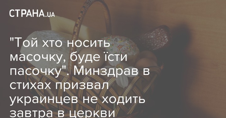 Минздрав попросил украинцев не ходить за "пасхальными корзинами" в магазин, а заказать их онлайн, поздравить родных и близких по телефону, оставаться дома и смотреть церковные службы из дома по телевизору.