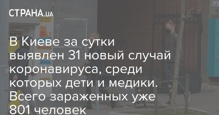 "Количество киевлян, у которых лабораторно подтвердили заболевание коронавирусом, за минувшие сутки увеличилась еще на 31 человека. Из них - 4 медики. Один случай за минувшие сутки, к сожалению, - летальный. Всего в Киеве уже 801 подтвержденный случай заболевания Covid-19", - сообщил мэр.