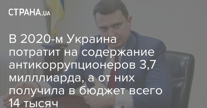 "Украина выделила на содержание антикоррупционных органов в 2020 году 3,7 миллиарда гривен. В первом квартале 2020 антикоррупционные органы принесли бюджету 14 000 гривен", добавил он.