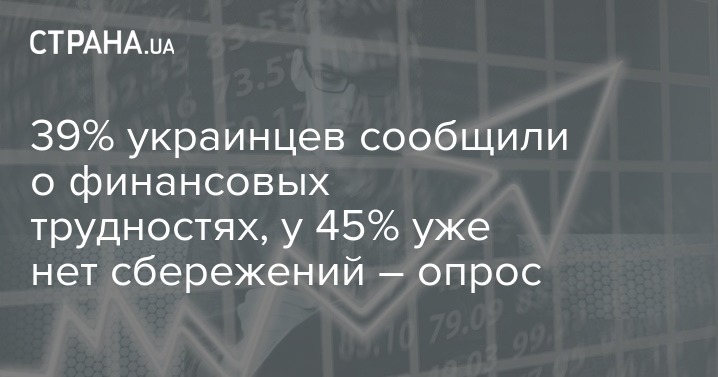 С начала действия карантина в рамках борьбы с распространением коронавирусной болезни Covid-19 39% украинцев сообщили о появившихся финансовых трудностях, 45% завили про отсутствие сбережений. Около 90% украинцев отмечают, что с переходом на карантин у них возникли новые проблемы.
