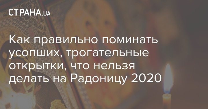 Впрочем, никакой карантин не может помешать вспомнить об умерших родных и друзьях, прочитать молитвы за их упокой. "Страна" рассказывает, что можно и нельзя делать в поминальный день, как правильно поминать по церковным обычаям и публикует трогательные открытки.