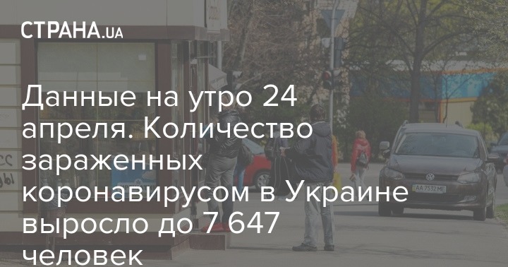 По состоянию на утро пятницы, 24 апреля, в Украине зафиксировано уже 7 647 случаев заражения коронавирусом Covid-19. Вчера, 23 апреля в стране было 7 170 заболевших человек. Всего же за сутки болезнь выявили у 477 человек.