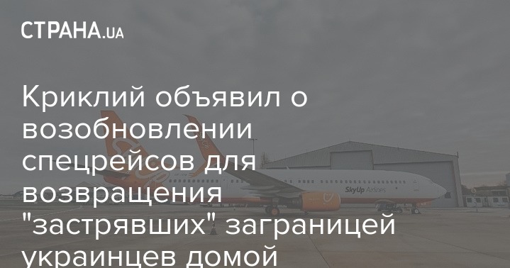 "У меня хорошие новости для украинцев, которые сейчас находятся за границей и хотят вернуться домой. Мы восстанавливаем специальные рейсы в Украину из разных стран мира. Но только при условии обязательной обсервации в течение 14 дней после возвращения - в специализированных учреждениях или дома, соблюдая режим самоизоляции. Контроль за последнее будет осуществляться с помощью приложения "Дий дома" на платформе "Дия", - отметил Владислав Криклий.