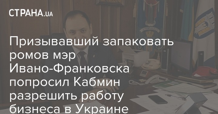 "Обращаюсь к правительству и президенту - время пересмотреть требования и позволить ряду бизнеса работать и в городе Франковске, и в Украине, поскольку от этого зависит и жизнедеятельность страны и жизнедеятельность города", - сказал мэр.