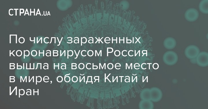 Российская Федерация поднялась на 8-е место в мире по числу заболевших Covid-19. Еще вчера она опередила Китай, а теперь еще и Иран.