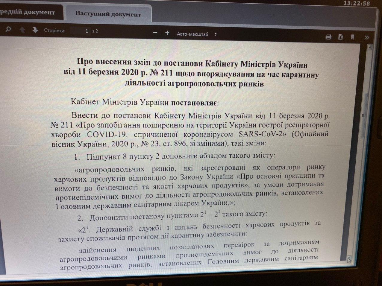 14:08 Кабмин разрешил работу рынков в Украине. На заседании члены правительсва поддержали критерии, разработанные Минздравом и Минэкономики, которые позволяют агропродовольственным рынкам восстановить свою деятельность.Теперь там необходимо проводить ежедневные внеплановые проверки. Кроме того, на территории рынка должны постоянно находиться минимум два инспектора.