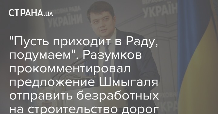 Глава Верховной Рады Дмитрий Разумков прокомментировал намерение премьера Дениса Шмыгаля создавать новые рабочие места путем привлечения украинцев к ремонту и строительству автомобильных дорог