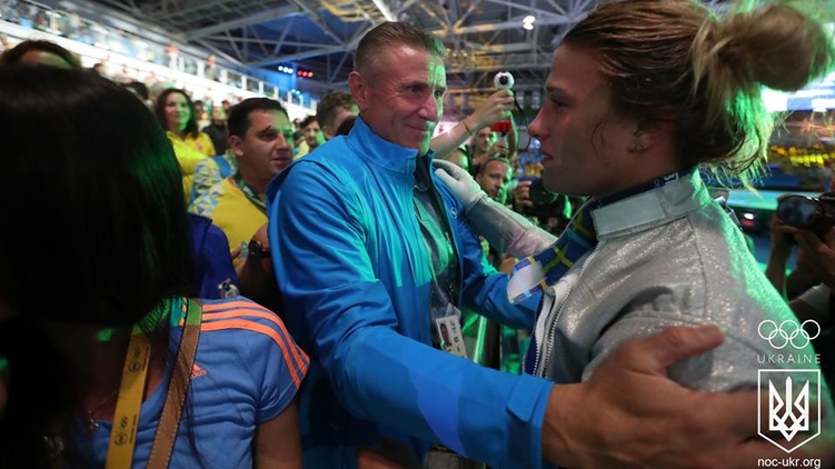 Одним из первых, кто поздравил ее с победой, тут же, прямо в зале был президент НОК Украины Сергей Бубка.