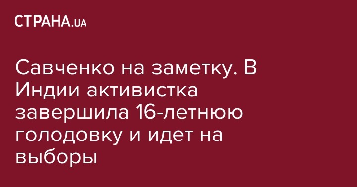 Одна из самых известных политических активисток в Индии Иром Шармила, известная как Железная леди Манипуру, сегодня завершила свою 16-летнюю голодовку и намерена заняться политикой. Она пойдет на выборы. Об этом сообщает ВВС.