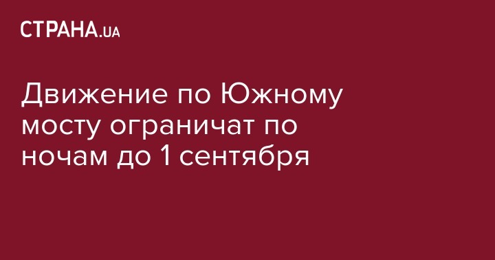 С 21:00 вторника, 9 августа и до 6:00 1 сентября в Киеве будет частично ограничено движение транспорта по Южному мосту. Об этом сообщает пресс-служба Киевской городской государственной администрации.