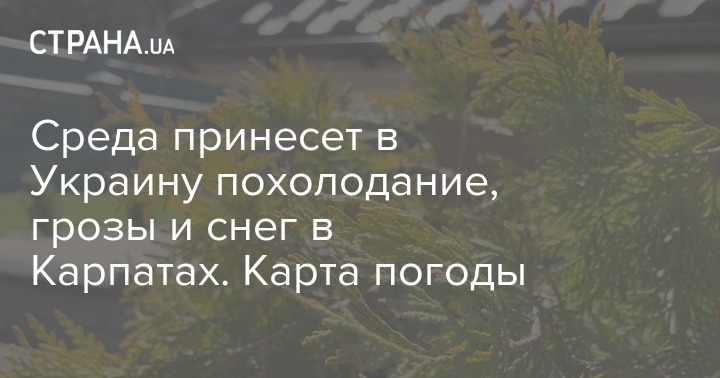 Среда принесет в Украину похолодание, грозы и снег в Карпатах. Карта погоды