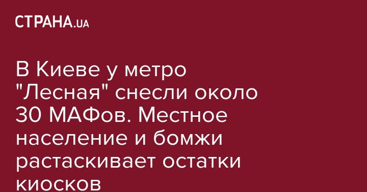 В Киеве у метро "Лесная" снесли около 30 МАФов. Местное население и бомжи растаскивает остатки киосков