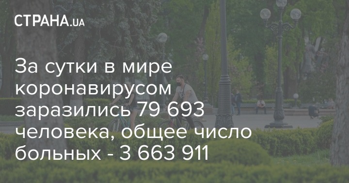 По состоянию на утро среды, 6 мая, количество зараженных коронавирусом в мире увеличилось до 3 663 911 человек, прирост за сутки составил 79 693 случаев.