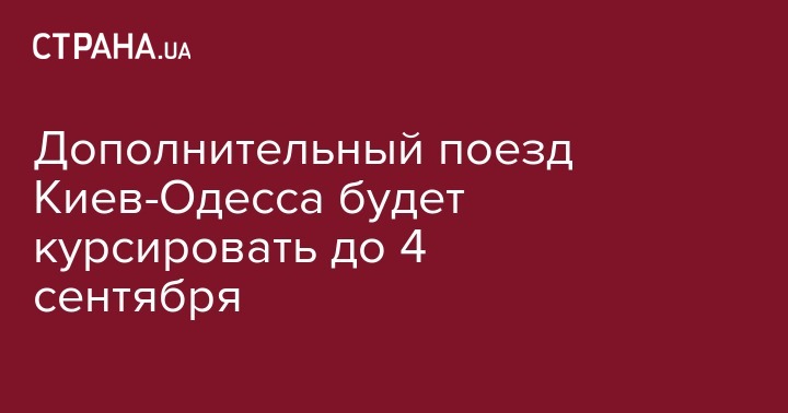 Назначенный дополнительно скоростной поезд №761/762 маршрутом Киев-Одесса будет курсировать до 4 сентября. Об этом сообщает пресс-служба "Укрзализныци".