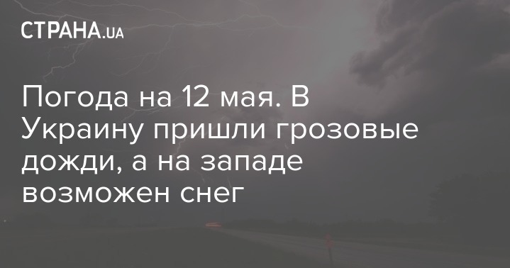 В Украине сегодня, 12 мая, по всей территории страны пройдут грозовые дожди. Ветер обещают северо-западный 7-12 м/с, в Карпатах вероятен мокрый снег и метель.