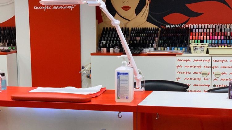 Также в Киеве, на Метрограде, открылся "Экспресс маникюр" - на столах стоят антисептики, а мастер радуется открытию. "Наконец-то. Мы с напарницей вдвоём работаем, сейчас ко мне клиент приедет", - рассказала мастер.