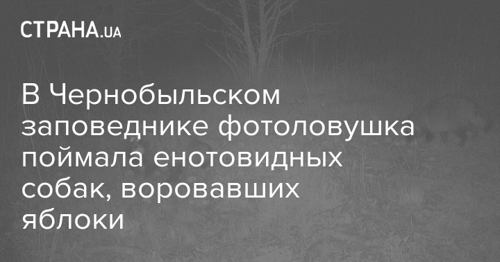 В Чернобыльском заповеднике фотоловушка поймала енотовидных собак, воровавших яблоки