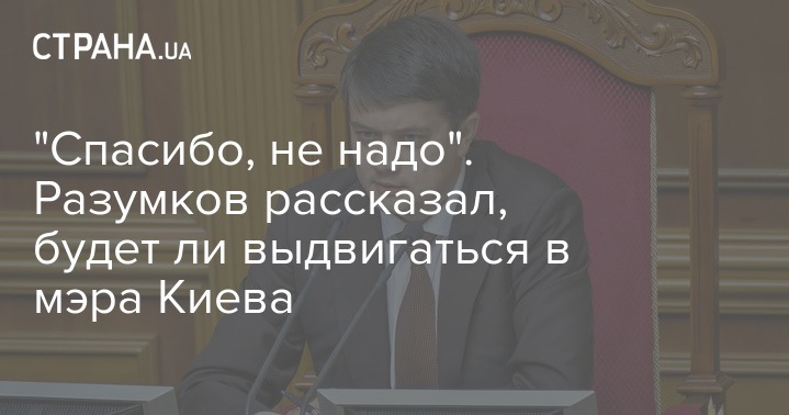 "Спасибо, не надо. Я лучше буду заниматься тем, чем я занимаюсь. Надеюсь, я соответствую тем критериям, которые должны быть у главы Верховной Рады Украины", - ответил Разумков на вопрос о возможном выдвижении на пост мэра столицы.