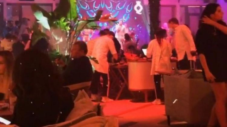 На кадрах видно, что в клубе много людей - заполнены все столики и танцпол. При этом большинство посетителей комплекса были без средств защиты и не соблюдали социальную дистанцию.