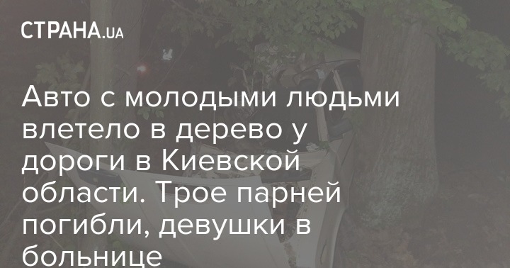 Авто с молодыми людьми влетело в дерево у дороги в Киевской области. Трое парней погибли, девушки в больнице