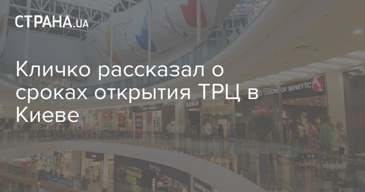 Киевский мэр Виталий Кличко заявил, что крупные торговые центры в столице нужно открывать только после того, как будет восстановлена работа метро. Также этому должно способствовать улучшение эпидемиологической ситуации.