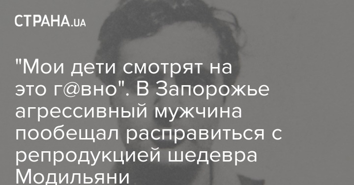 "Мои дети смотрят на это г@вно". В Запорожье агрессивный мужчина пообещал расправиться с репродукцией шедевра Модильяни