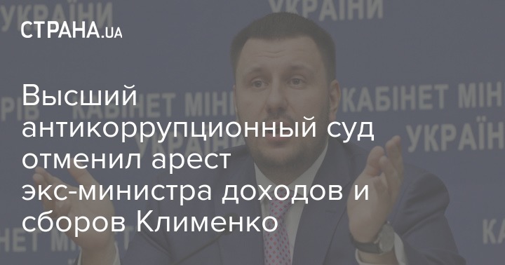 Высший антикоррупционный суд (ВАКС) отменил решение Печерского районного суда Киева о заочном аресте экс-министра доходов и сборов Александра Клименко.