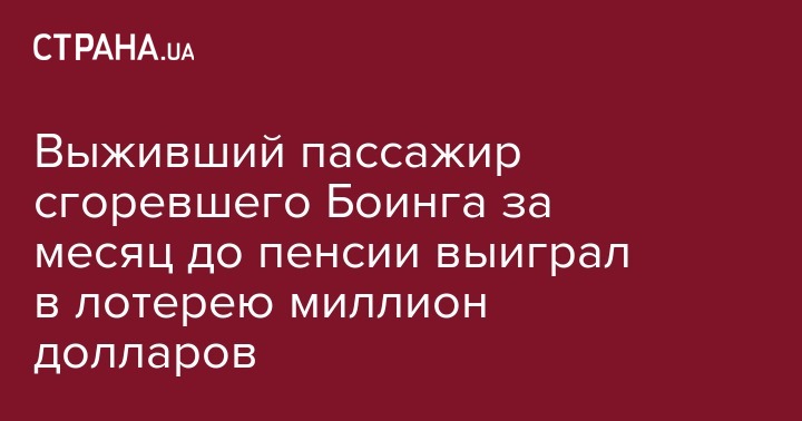 Выживший пассажир сгоревшего Боинга за месяц до пенсии выиграл в лотерею миллион долларов