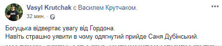 А журналист Василий Крутчак предположил, что таким образом Богуцкая отвлекает внимание от "прославившегося" накануне Гордона.