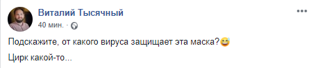 "Подскажите, от какого вируса защищает эта маска? Цирк какой-то", - спросил в соцсети журналист.
