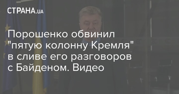 Порошенко обвинил "пятую колонну Кремля" в сливе его разговоров с Байденом. Видео