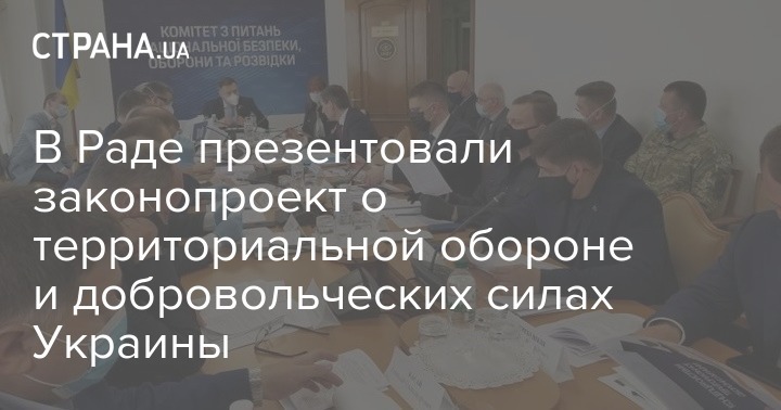 Законопроект о территориальной обороне Украины и о добровольческих силах обороны Украины был сегодня презентован 20 мая на заседании комитета Верховной Рады по вопросам нацбезопасности, обороны и разведки. В заседании комитета также участвовали замглавы Минобороны Александр Полищук, замсекретаря СНБО Сергей Кривонос, замглавы МВД Антон Геращенко и представитель Офиса президента Петр Ярошенко.