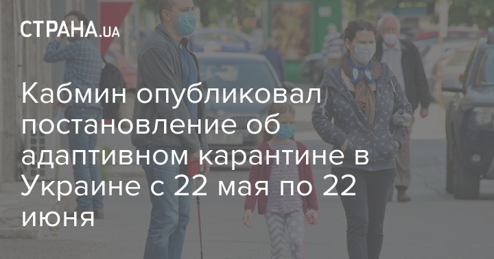 "Установить с целью предотвращения распространения на территории Украины … COVID-19 … с 22 мая до 22 июня 2020 на территории... с учетом эпидемической ситуации в регионе карантин, продлив на всей территории Украины действие карантина, установленного постановлением Кабинета министров от 11 марта 2020 №211", – говорится в документе.