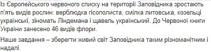 Всего же заповедник включает в себя 1256 видов сосудистых растений, 120 видов лишайников и 20 видов мхов. А также пять растений, включенных в Европейский красный список - верблюдица гисополистная, смолевка литовская, козлобородник украинский, зиномать Линдемана и щавель украинский. Из Красной книги Украины в заповеднике насчитывается 46 растений.