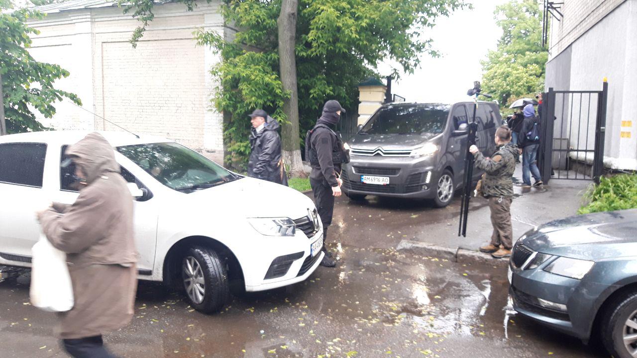 19:13 Мужчина, который заблокировал выезд, через 10 минут вернулся и разблокировал его. Спецназ ГБР уехал. Уезжали под крики сторонников Порошенко "Ганьба".