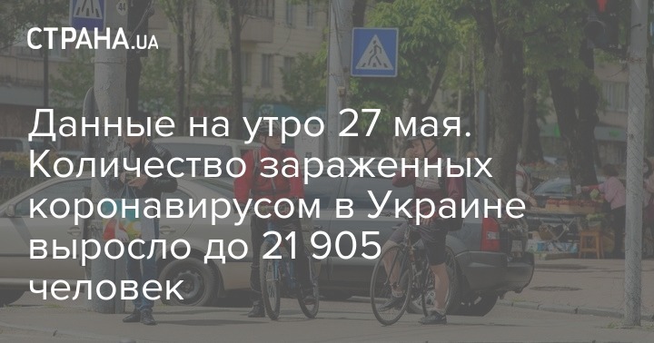 По состоянию на утро среды, 27 мая, в Украине подтвердили уже 21 905 случаев коронавируса. Еще вчера общее количество зараженных составляло 21 584. За сутки был обнаружен 321 новый случай коронавирусной болезни.