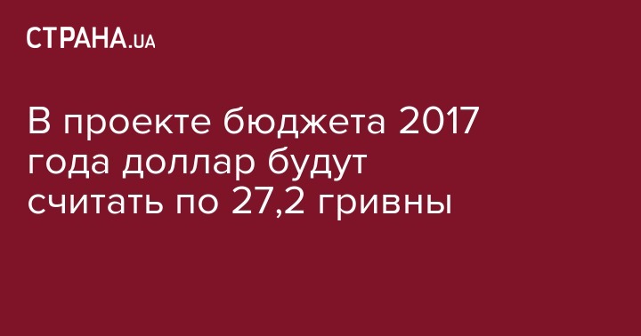 В проекте бюджета 2017 года доллар будут считать по 27,2 гривны