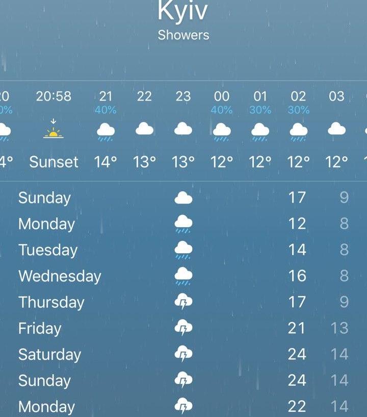Добавим, что согласно большинству прогнозов погоды, осадки будут идти в течение почти всей субботы. К слову, просветления на горизонте не видно - судя по всему, Киев будет в плену дождей еще около недели, если не больше.