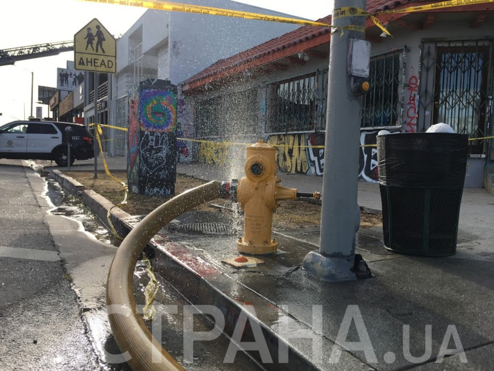 На углу с Беверли-драйв активно смывают последствия после протестов.