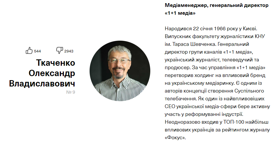 После этого конфуза голосовалку отключили. Потому что получалась парадоксальная вещь: Ткаченко и другие кандидаты, которых поставили на вершину списка, в первом приближении оказались непопулярными среди избирателей Зе.