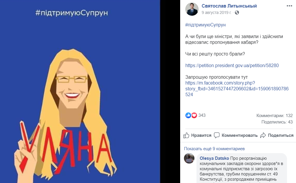 В августе 2019 года, когда формировался новый Кабмин, Литинский "топил" за Ульяну Супрун.