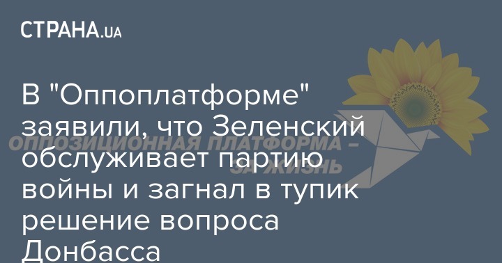 Оппозиционная сила потребовала у президента вернуться к исполнению своих обязательств по мирному урегулированию конфликта на Донбассе и отстранить от переговорного процесса всех приспешников партии войны.