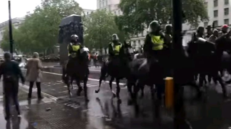 Конная полиция на протестах в Лондоне. Скриншот из видео
