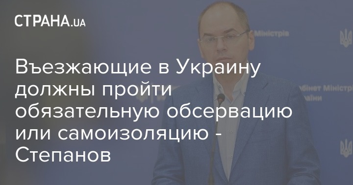 Въезжающие в Украину должны пройти обязательную обсервацию или самоизоляцию - Степанов