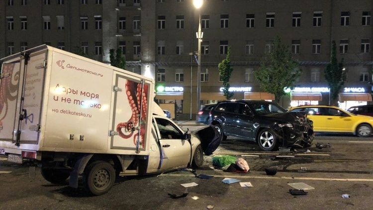 В понедельник в 21.44 у дома №3 на Смоленской площади водитель автомобиля Jeep Grand Cheroky Михаил Ефремов выехал на полосу встречного движения и совершил столкновение с автомобилем Lada. В ДТП пострадал водитель Lada, он был госпитализирован.