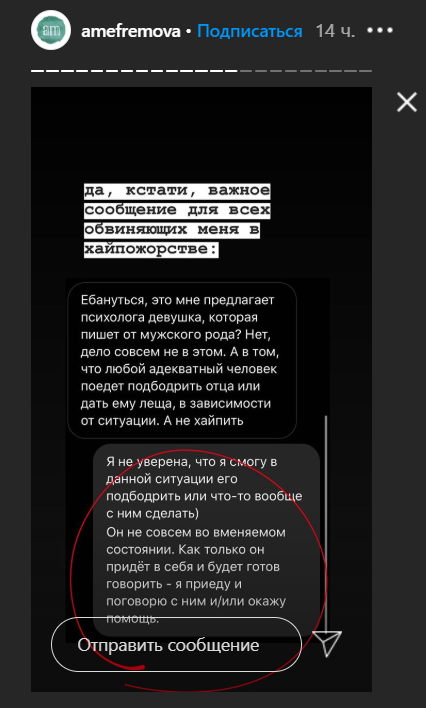 Также она интересовалась контактами семьи пострадавшего, а впоследствии скончавшегося, водителя фургона. Позже Анна Мария написала в соцсети, что контакты уже нашла и не одобряет поступок  отца и тех, кто сидел с ним в авто.
