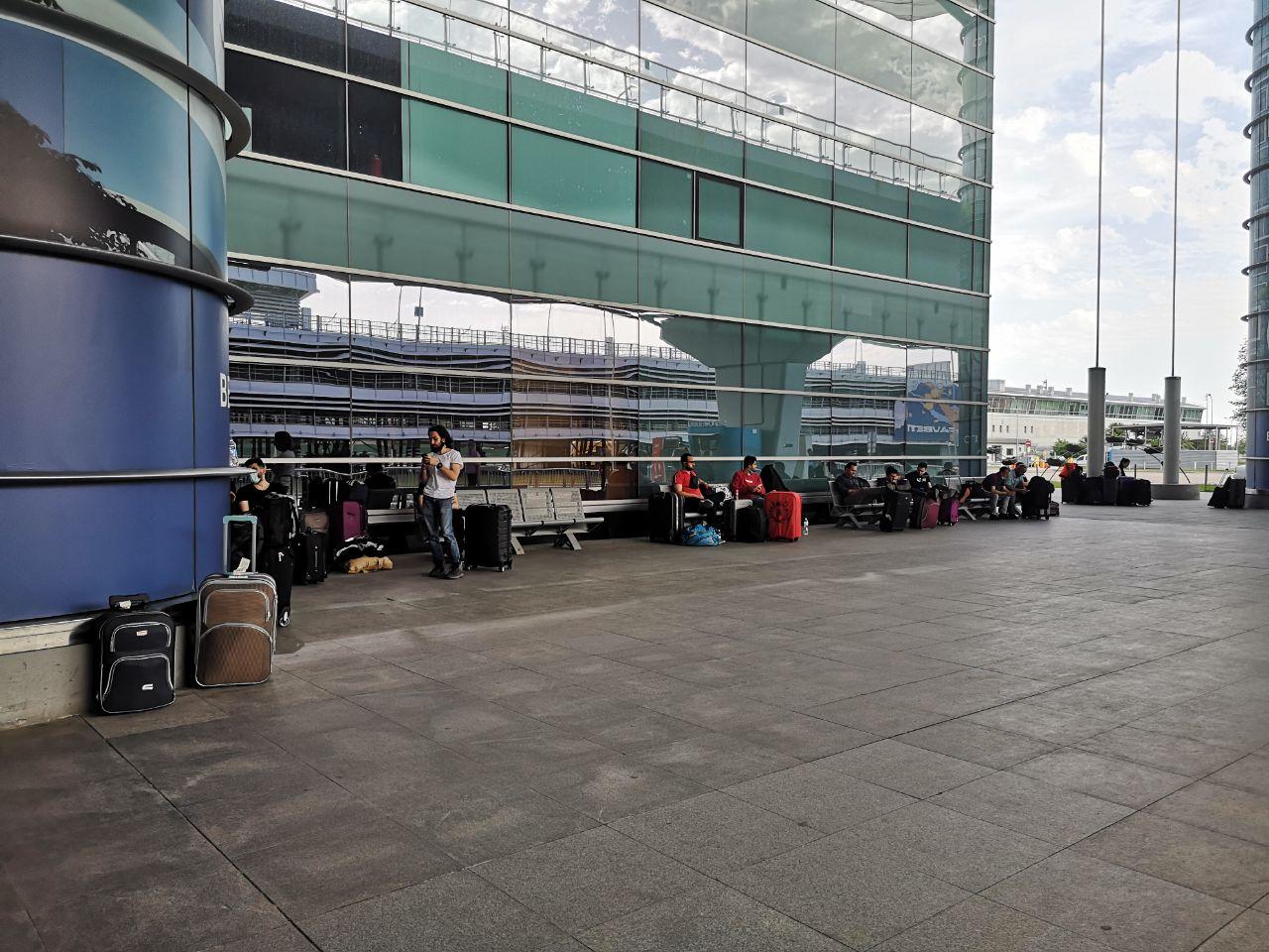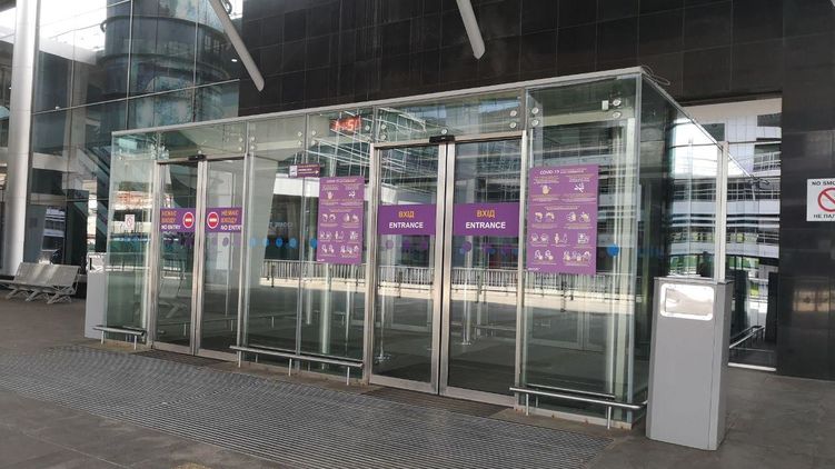 К примеру, руководство аэропорта сообщало, что в Терминал D будут пропускать только пассажиров с посадочным талоном или билетом на самолёт (а провожающих и вовсе впускать не будут). Однако корреспондент "Страны" без проблем прошёл пропускной пункт через рамку металлодетектора, которая дистанционно измеряет температуру, и вошёл внутрь Терминала D. Билет на самолёт предъявлять не просили.
