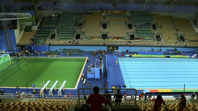После того как вода в бассейне для проведения соревнований по синхронному плаванию сначала позеленела, потом помутнела, а сегодня начала источать неприятный запах, оргкомитет Игр наконец-то принял решение о её замене, сообщает Лайф. ру.